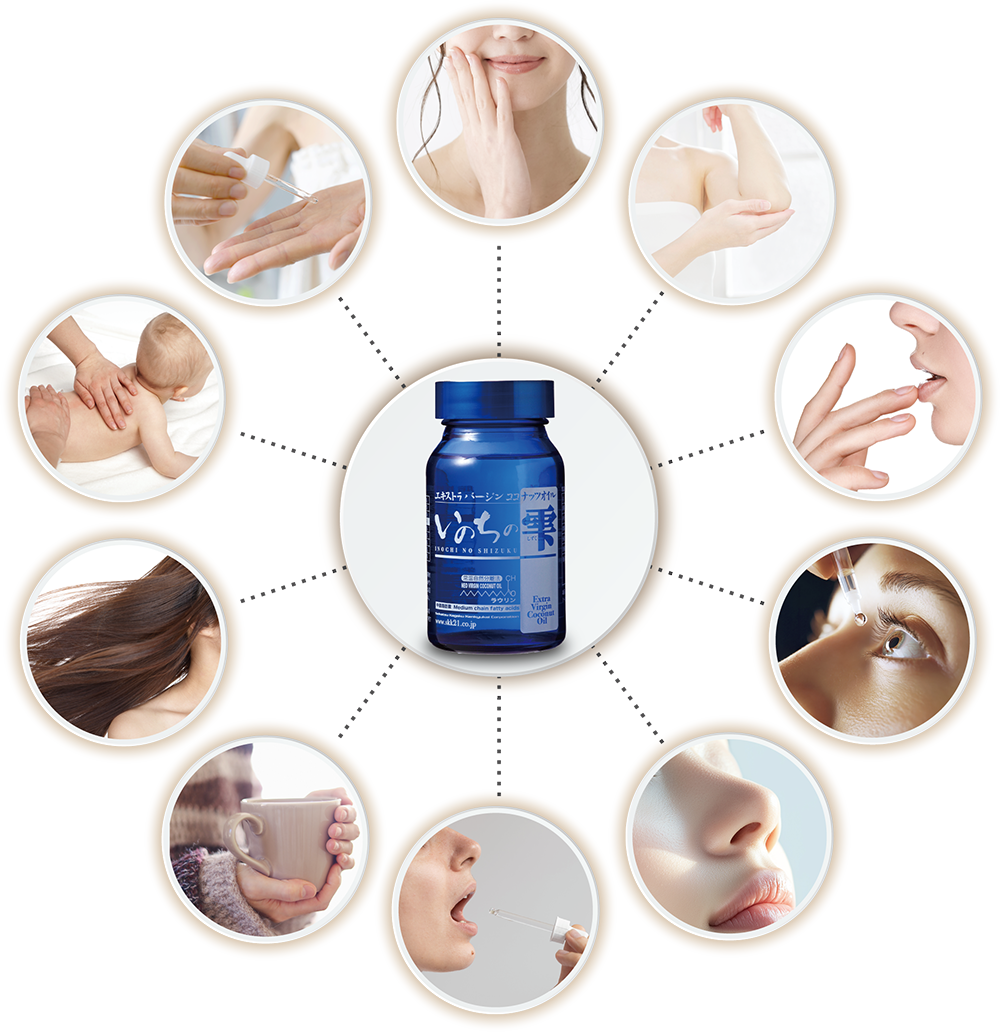 「いのちの雫」は、真実の有機栽培と製造工程で一切熱を加えず栄養素と酵素が豊富に含む常温自然発酵分離法でその思いを形にしたエキストラバージンココナツオイルです。