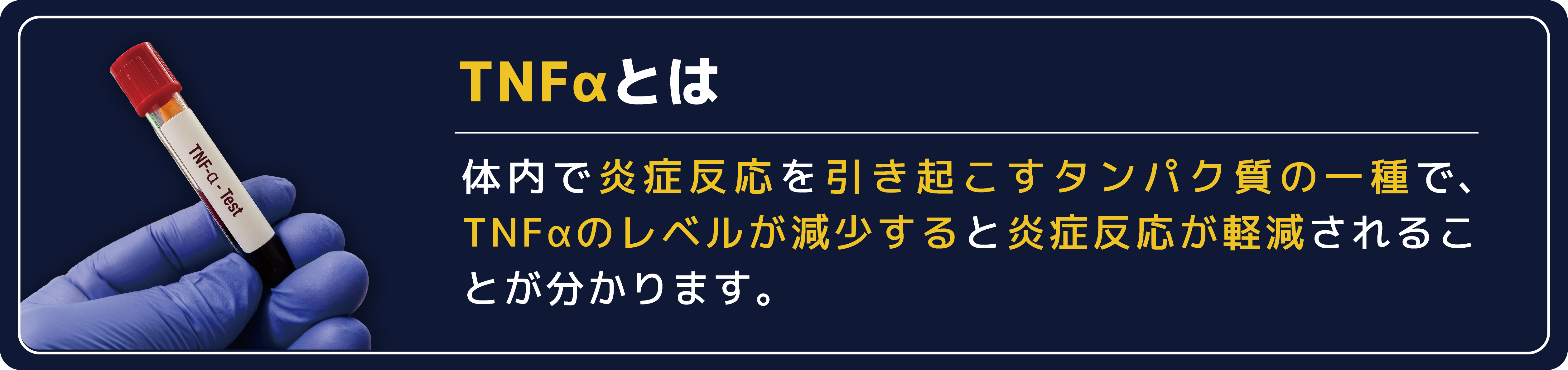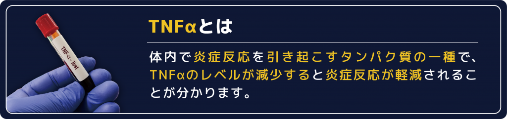 また、試験の評価基準として実験①では細胞Aと細胞Bを対象に、①TNFαの量を計測しました。