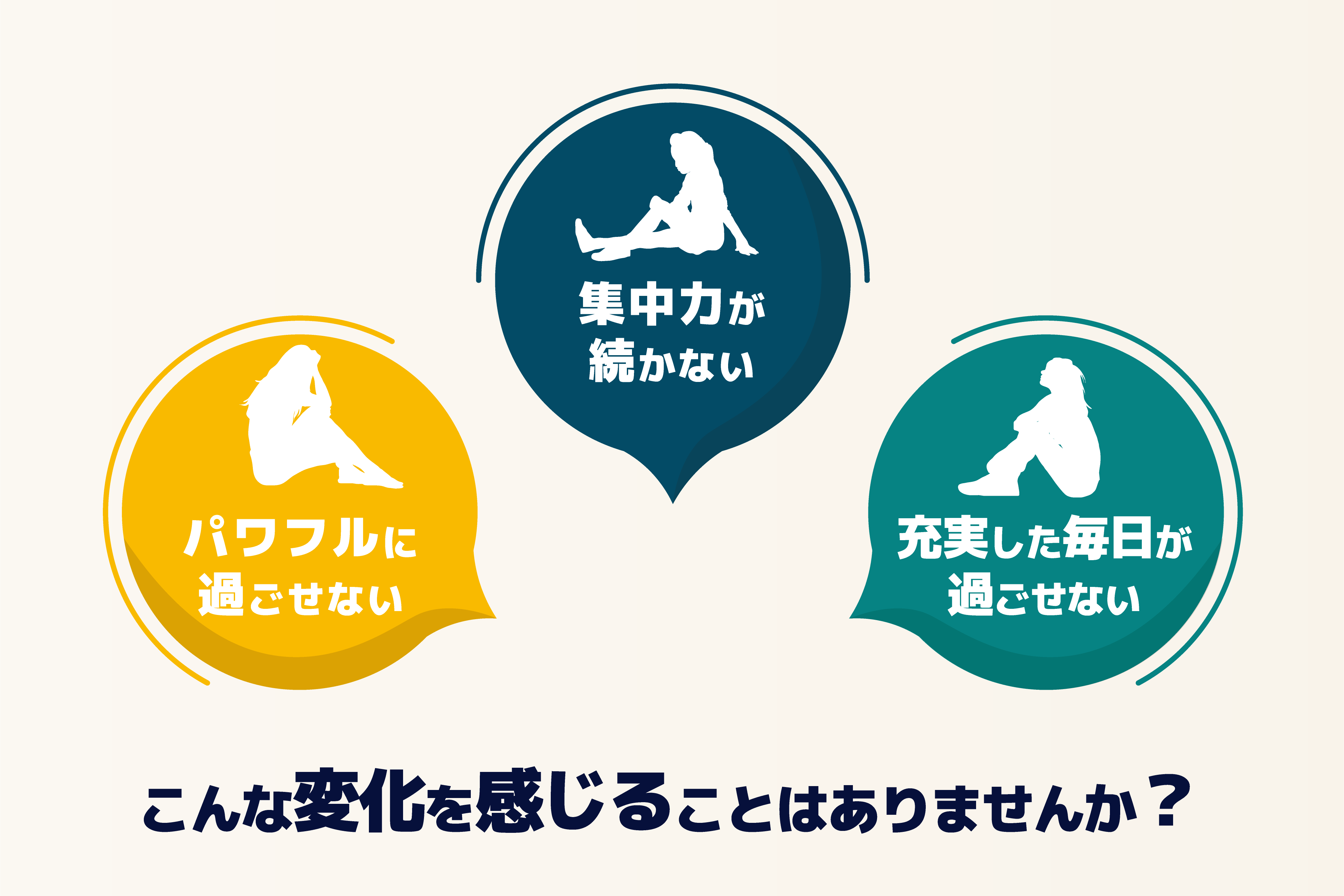 私たちの身体には、本来、変化に適応する「生きる力」 があります。しかし、ますます増加する余裕のない毎日や年齢サイン、環境の変化によって、その力は少しずつ弱まり、気づかないうちにめぐりが滞り、エネルギーを生み出す力が低下しています。