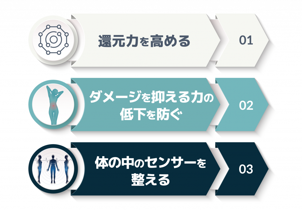 還元力・糖化対策・タンパク質の補給・脂質の見直し。