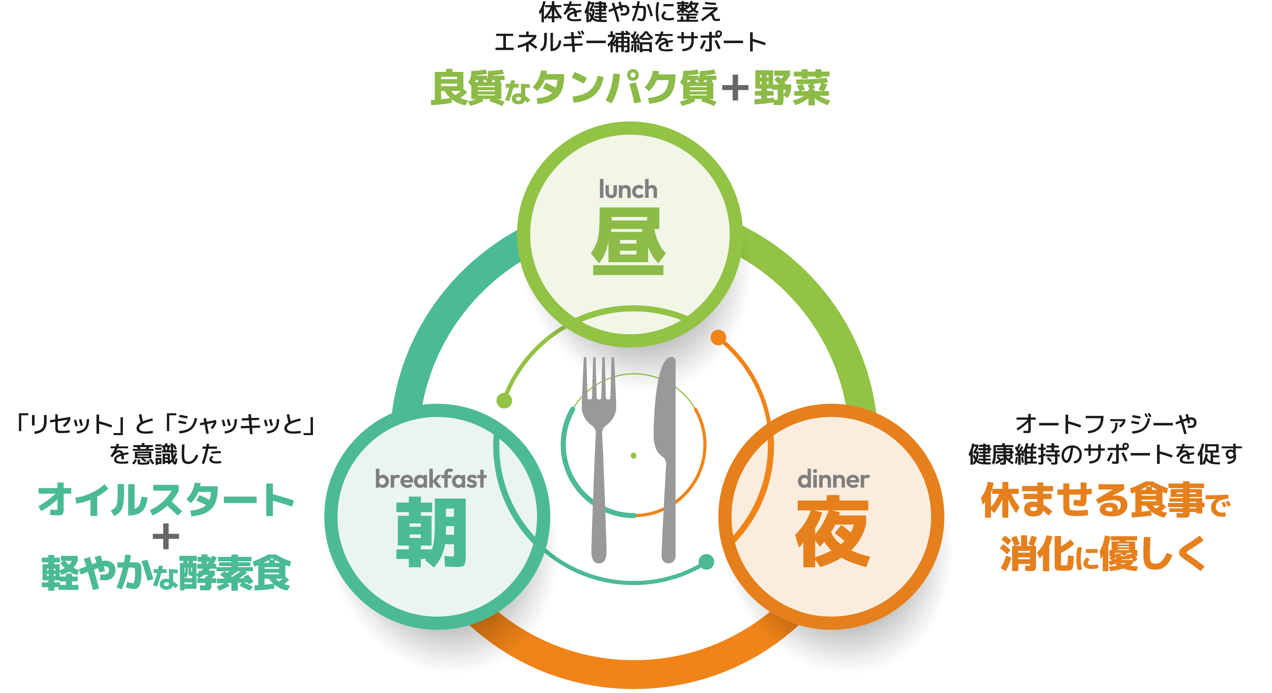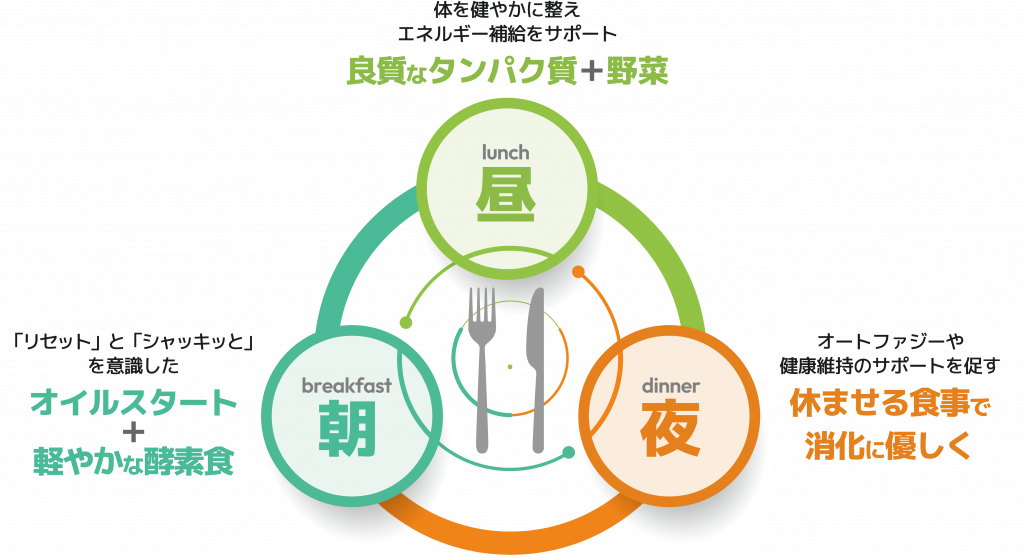 SKKでは、このセンサーを整える視点から、朝・昼・夜の食事の「食べ方」と「選び方」を提案しています。