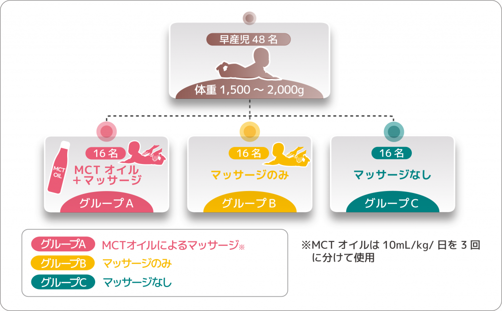 研究ではMCTオイルによるマッサージが、早産児の成長にどのような影響を与えるかを調査しました。