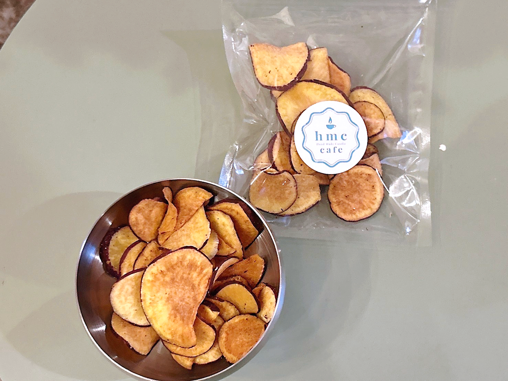 特に、芋チップスはテイクアウトでも人気でリピートも多く『あとをひく美味しさ!』と人気商品です。その作成者は、知的障害の我が子で、お客様に美味しいと言ってもらえて、自信がもて、社会に繋がる喜びになっています。