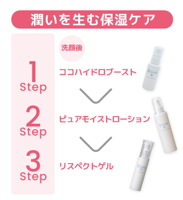 2.ピュアモイストローションの心地よいとろみ感で、潤いを満たし、すっきりとひきしめましょう