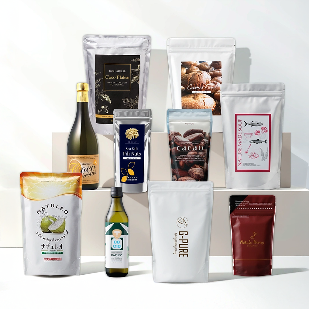 さらに、ココナッツフラワー、ココフレーク、ピュアカカオパウダー、海塩ピリナッツが加わることで、おやつやアレンジ料理まで幅広く楽しめます。